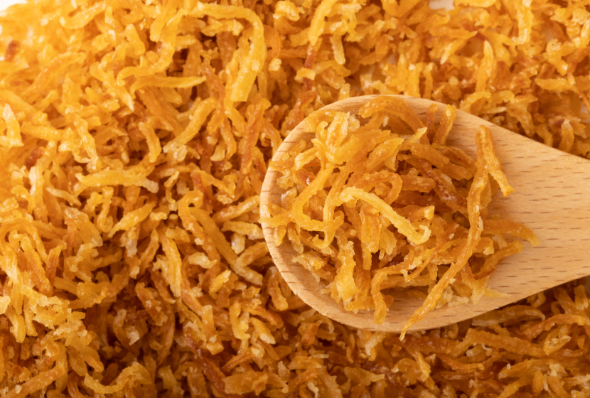 ・淡路島産ケル玉をなたね油でサクサクにフライしていてサラダやスープのトッピング・カレ-や煮込み料理のコク出し等様々な料理にお使いいただけます。